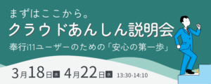 「まずはここから。クラウドあんしん説明会 奉行i11ユーザーのための『安心の第一歩』」のご案内です。